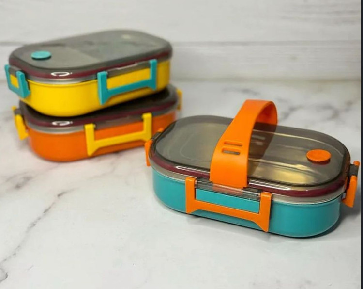 ظرف استیل ضد زنگ با رویه پلاستیک (قسمت استیل داخل ظرف جدا نمیشود)