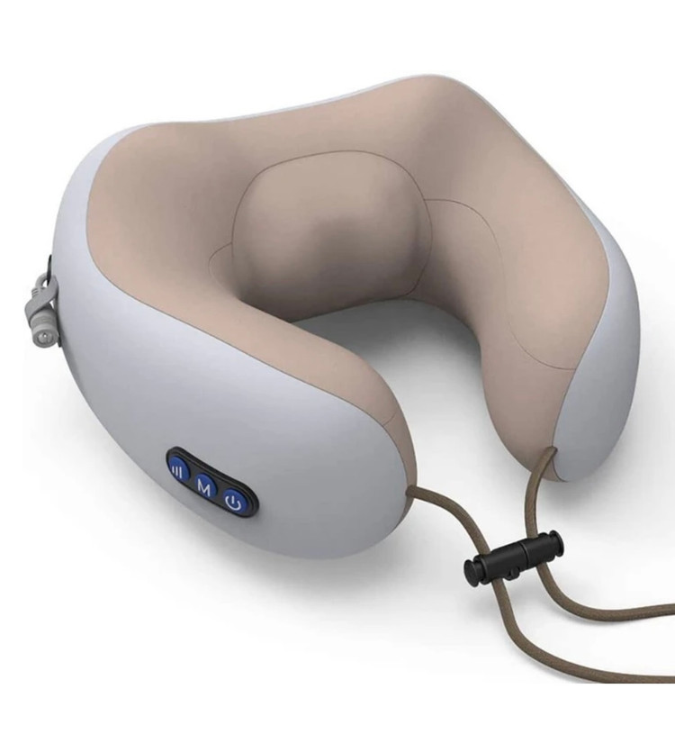 همزمان یک ماساژور قابل حمل و یک بالش گردنی لطیف با جنس رویه مخمل است